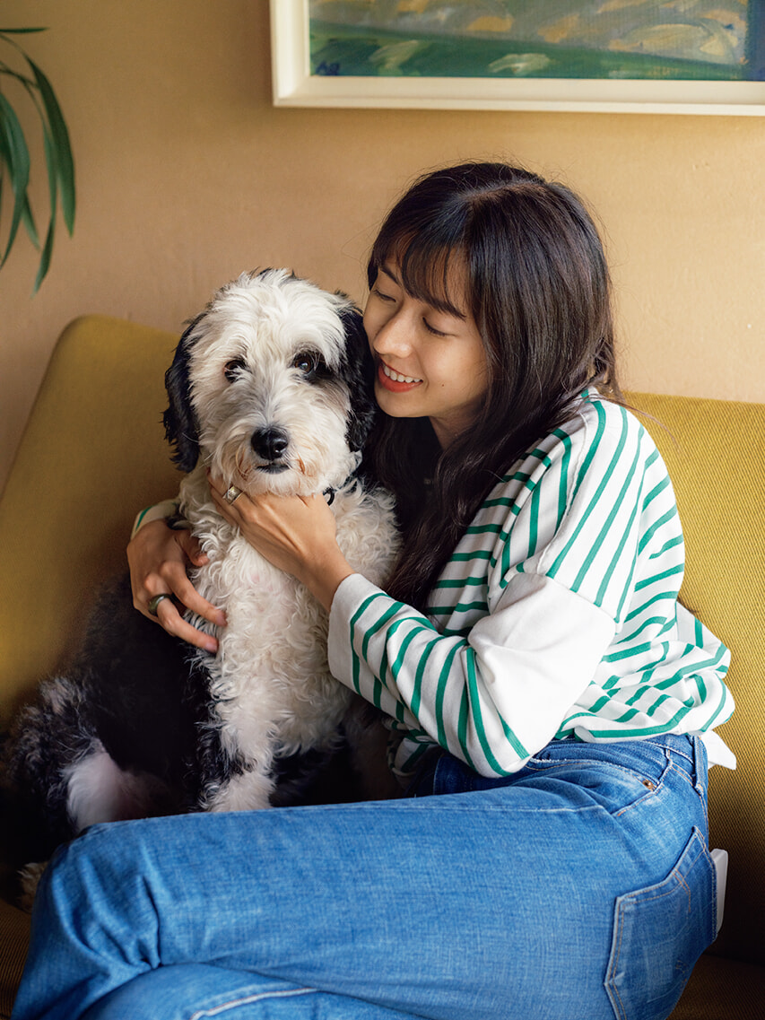 子育ても終わり、多くの動物たちを看取ったいまだからこそ、やっと犬との暮らしを楽しめているような気がする、と話す桐島かれん。写真家の上田義彦と結婚した時、彼が飼っていた犬と生活を始めて、すっかり魅了され、犬派になってしまった、と振り返る。