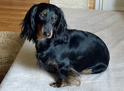 Sanshiro 2021年生まれ、ミニチュアダックスフント。趣味はボール遊び。
