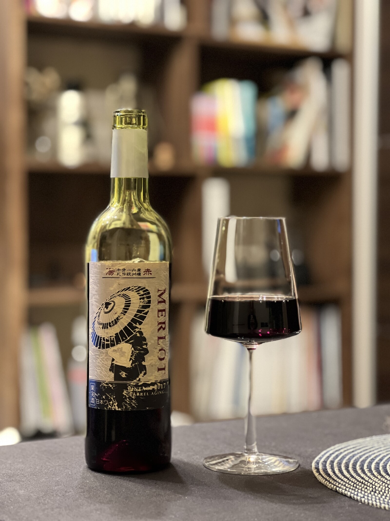 Y 4人で2日間で15本ぐらい飲みましたね。基本的に山形って欧州品種がめちゃくちゃ多いエリアなんですよね。いちばん気に入ったのは、赤湯っていう東北で最も古いワイナリーがあるワイナリーの密集地帯があって、そこに「地酒蔵 ゆうき」という、かなり大規模な日本酒とワインの酒販店さんがあるんですが、ブドウ農家さんとコラボで作ってるワインっていうのが結構置いてあって。その中の1本「赤湯十分一山産純粋欧州メルロビンテージ2017」は、蛇の目傘を差した着物姿の女性が描かれてある奥ゆかしいボトルでして(笑)、ちょっとジャケ買いしてみたところ、これがまあ本当にきれいなメルロで、フードフレンドリー。土の臭いがしっかりしてるのに、上品で。