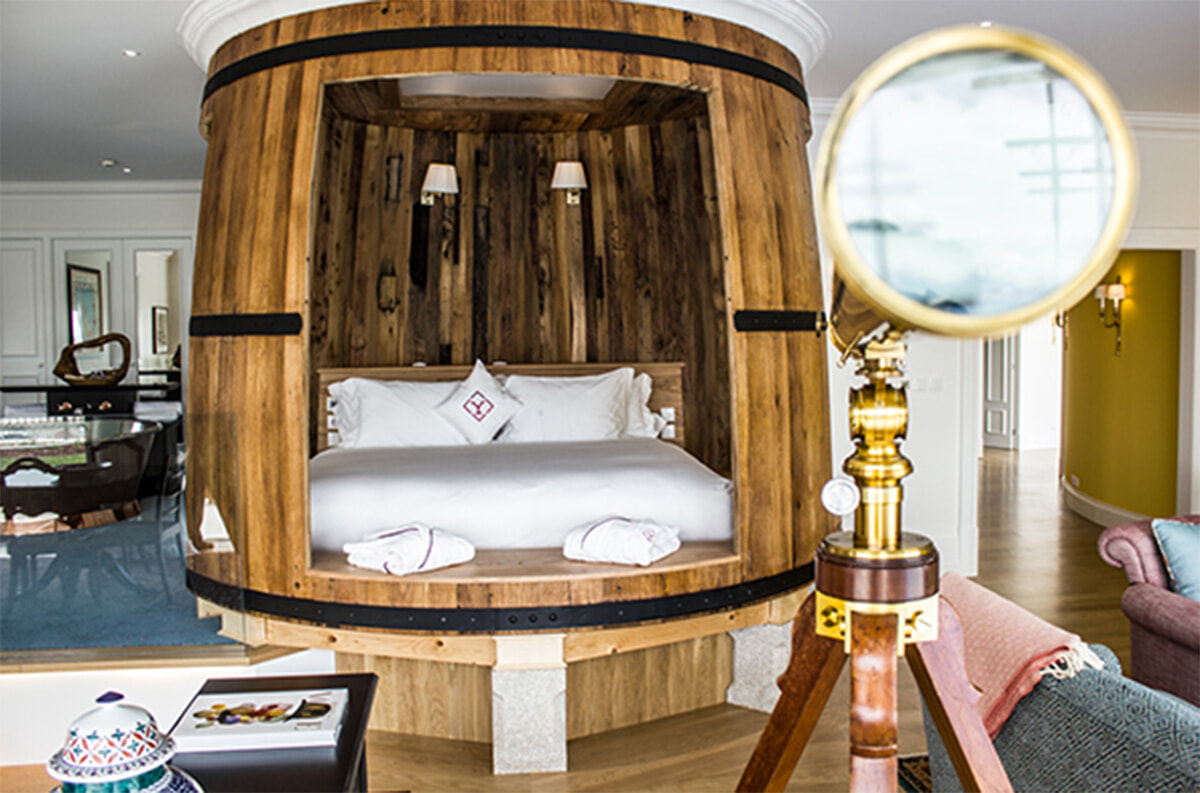 プレジデンシャルスイート。木樽の中で眠る体験は、ワインホテルならでは。テイラーズマスタースイートにも木樽のベッドが。©The Yeatman Hotel