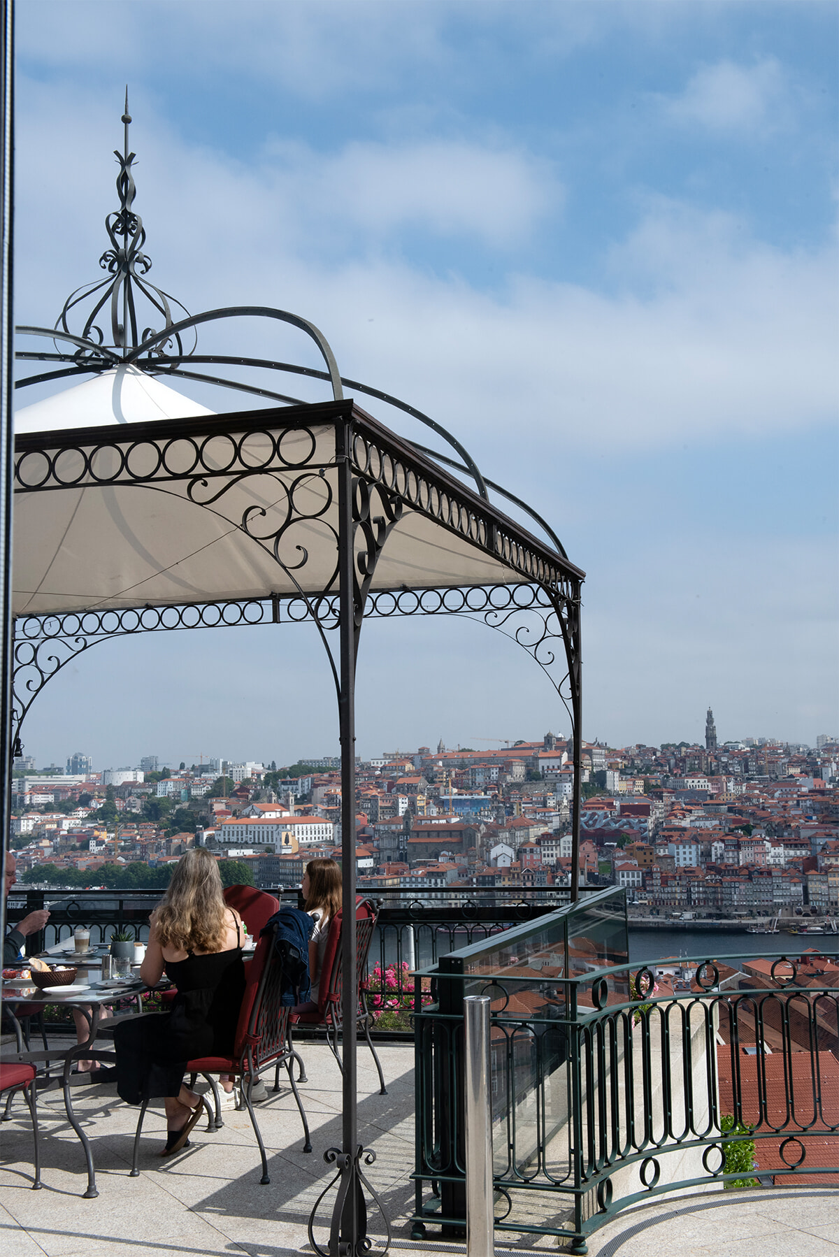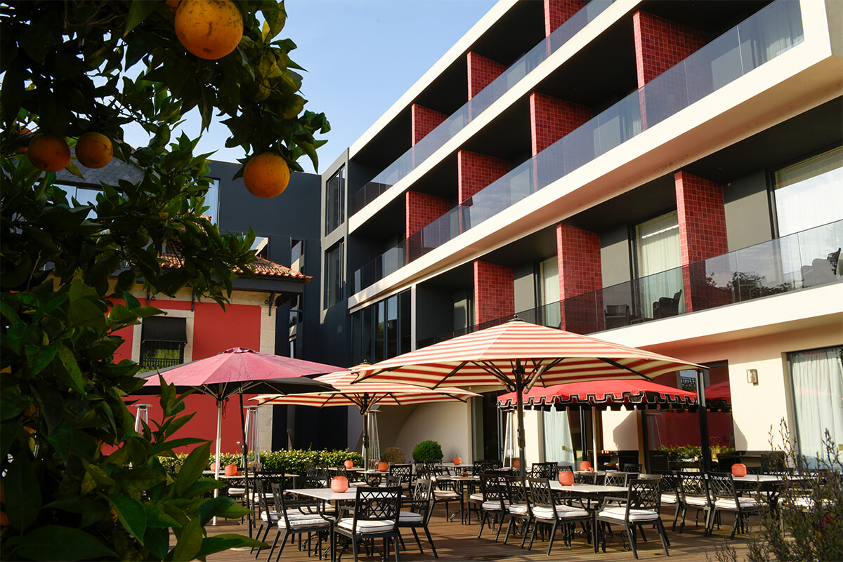 新館1階にあるテロワール ブラッスリーのテラス席。ドウロ川の景色を眺めながら朝食を味わえる。photography: Ayumi Shino