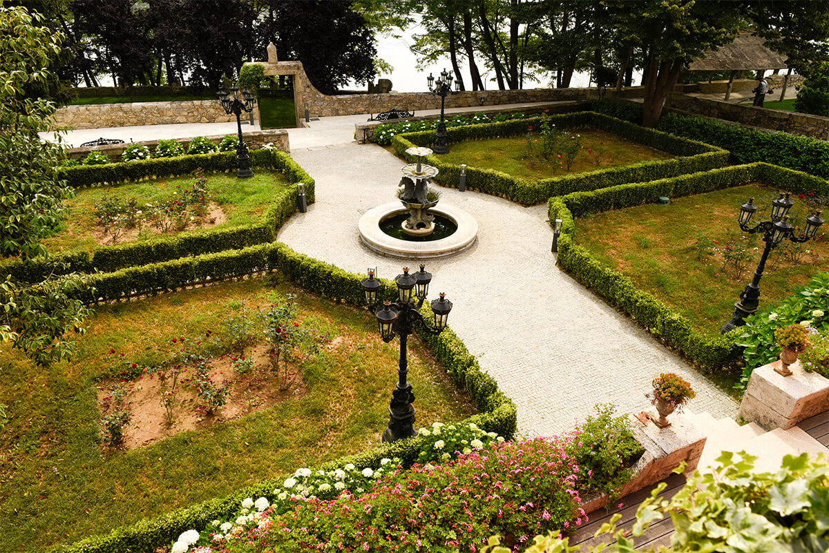旧館の部屋から見えるドウロ川沿いの中庭。ホテル専用のプライベートボート乗り場があり、ポルトの中心部までボートで送ってくれるサービスも。街の中心に観光に行く際にはぜひ利用してみて。photography: Ayumi Shino