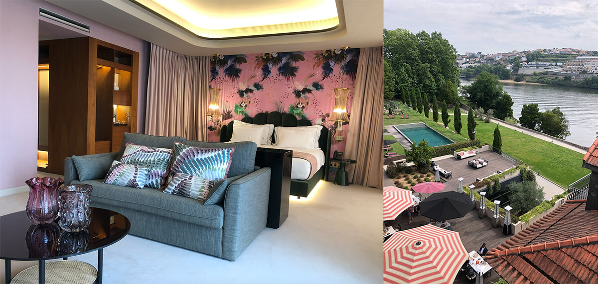 ワイン好きの人にぜひ泊まってほしいのがラグジュアリーワインホテル、「The Yeatman Hotel(ザ・イエットマン・ホテル)」だ。ルレ・エ・シャトー・コレクションの一員であり、ミシュラン2ツ星のレストランもあり、ポルトで最高のホテルとして注目を集めている。ワインの貯蔵庫が並ぶ歴史的エリア、ヴィラ・ノヴァ・デ・ガイアの小高い丘の上に位置し、レストランのテラスや客室から、ポルト中央に流れるドウロ川とユネスコ世界文化遺産に登録されているレトロな街並みを一望できるのが特徴。
