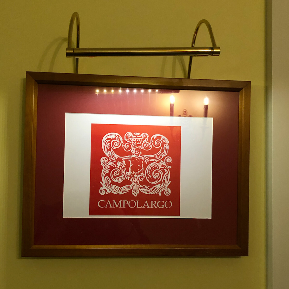 客室の扉の横に飾られているのは、ワイン生産者のブランドイメージかロゴ。