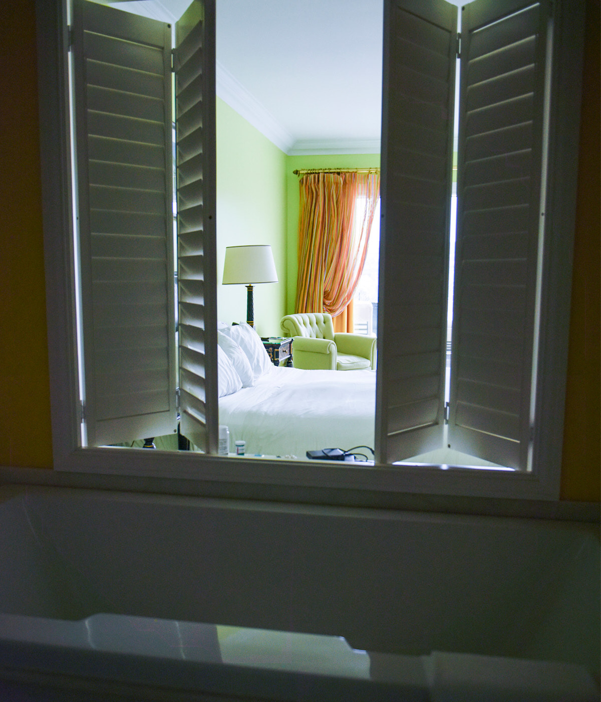 大理石のバスルームは、独立したウォークインシャワーのほかに、広くて深いバスタブ付き! シャッターを開ければ外の景色まで見える。ゆったりしたバスタイムで旅の疲れを癒して。高品質のアメニティも完備。photography: Ayumi Shino