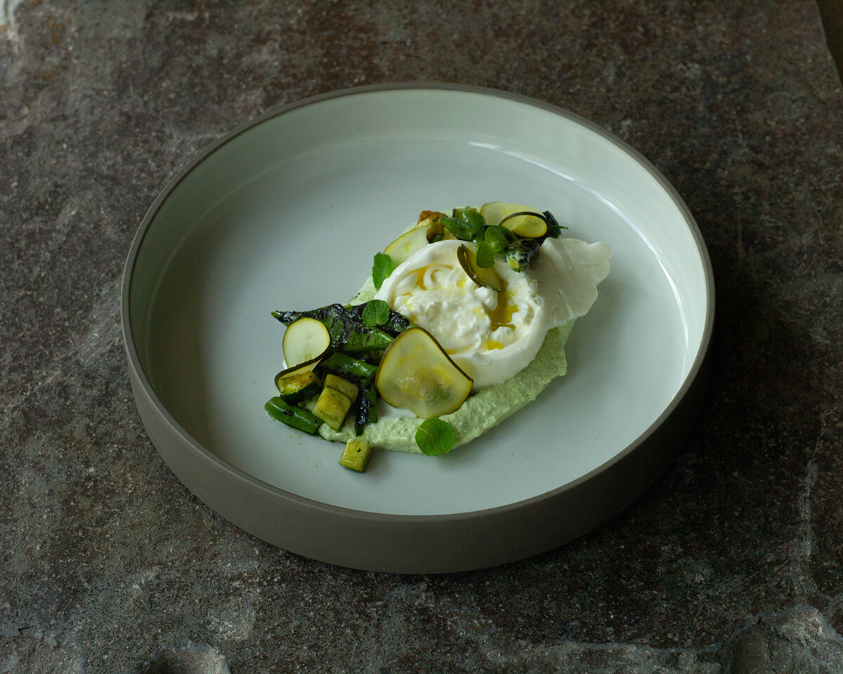 カフェレストランでは、多国籍なバックグラウンドのメニューを提供。ワインセラーにはクラシックなものからナチュラルまで常時2000本以上のワインを取り揃える。