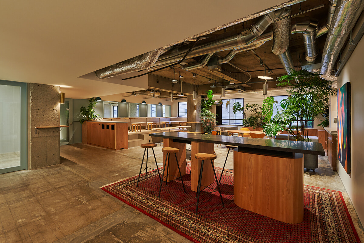オフィスやレジデンスの入居者が利用可能となる2階のラウンジでは、利⽤者同⼠のコミュニケーションから新たな企画が生まれそうな予感。