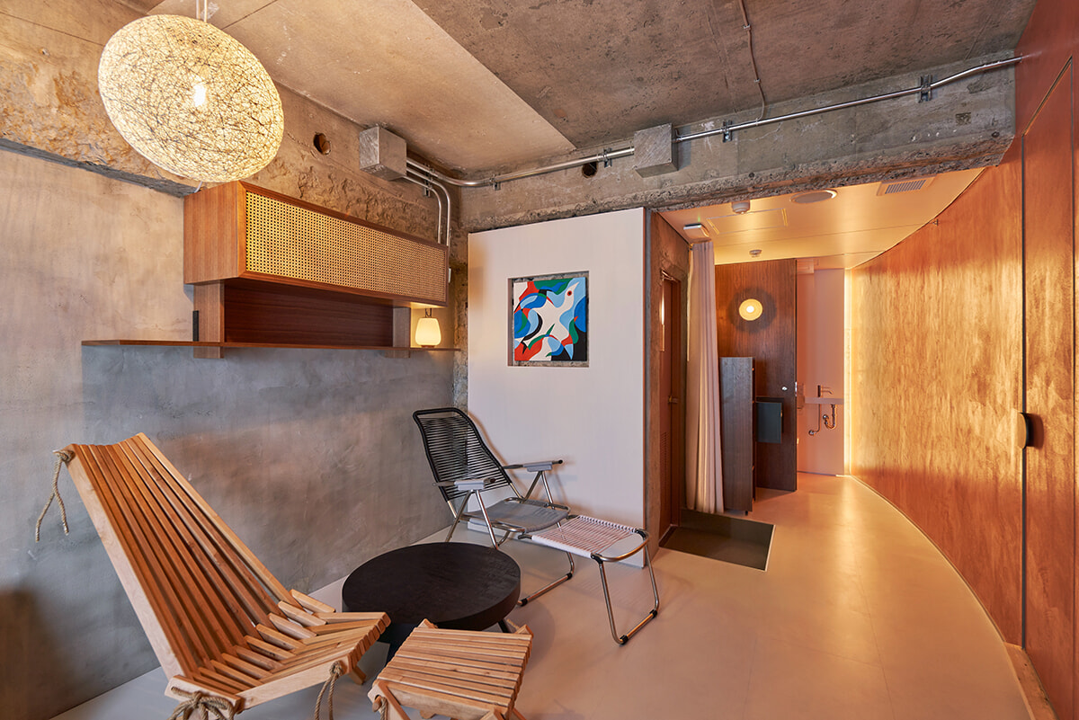 4〜5階は、外部からの宿泊利用はもちろんのこと、シェアハウスのような形で長期滞在もできるホテルレジデンスに。住居として賃借しながらも借主が外泊する日は外部に提供するホテルルームとして再販され、その分賃料が減額される「リレント」というシステムを導入し、これまでの都市滞在のフォーマットに風穴をあける予感。また、5階の一角には4名まで同時利用可能なプライベートサウナも。香りや音楽にまでこだわった上質なスペースは1回100分制で、オフィスやホテルの利用者でなくとも予約可能というから注目を。