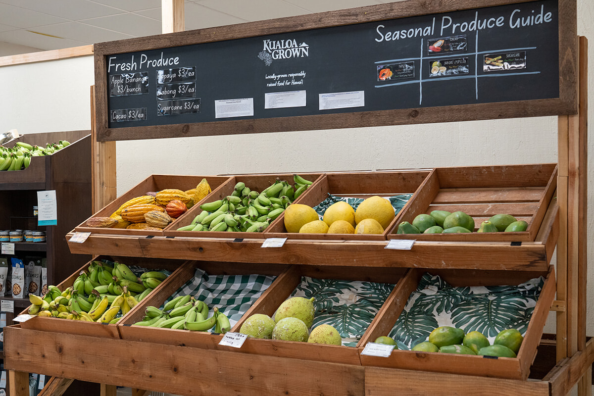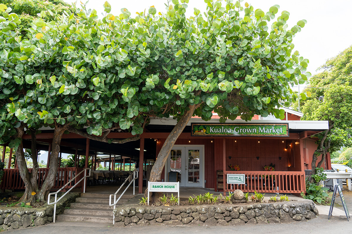 1860年代に牧畜が始まり、約500万坪という広大な土地をフィールドにした乗馬や映画のロケ地巡りができる観光牧場として有名なクアロアランチでは農業も行っている。パンデミックを機にして地元の人のために開いたマーケットがきっかけとなりオープンした『クアロア・グロウン・マーケット』では、クアロアランチで収穫された農産物や肉・魚介類を取り扱う。