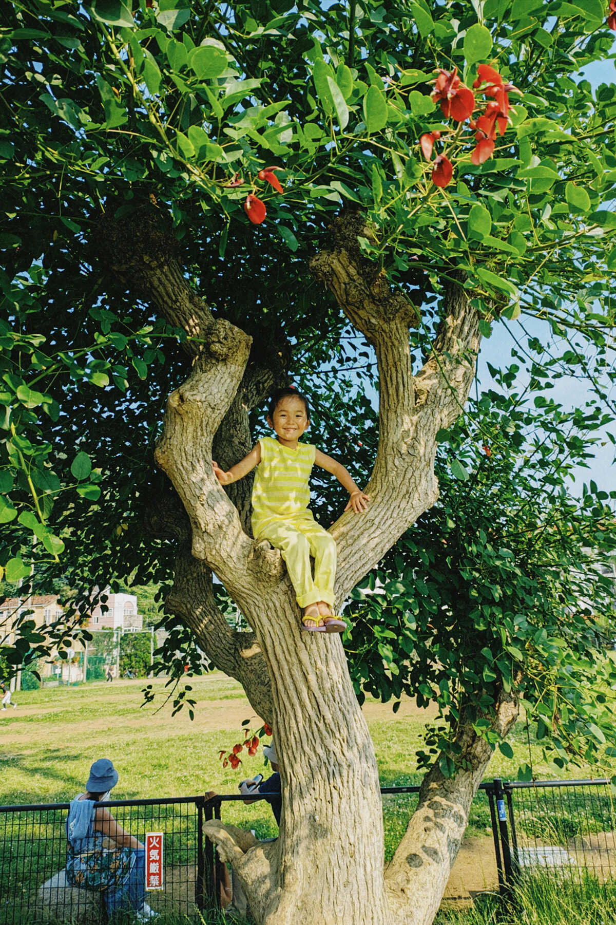 海で遊んだあとは、公園でお弁当を食べたり木登りをしたり。そして、また海に戻るというエンドレスループ。子どもにとって、遊びにことかかない環境だ。
