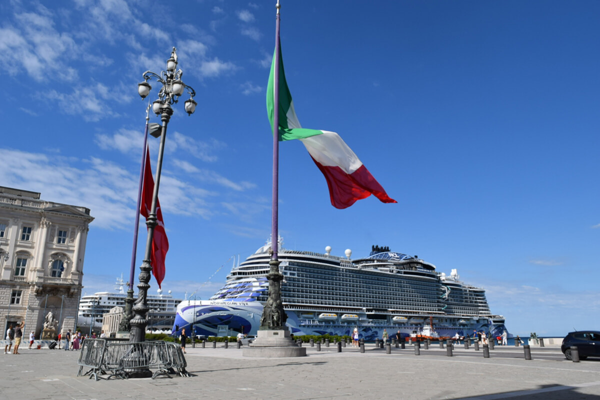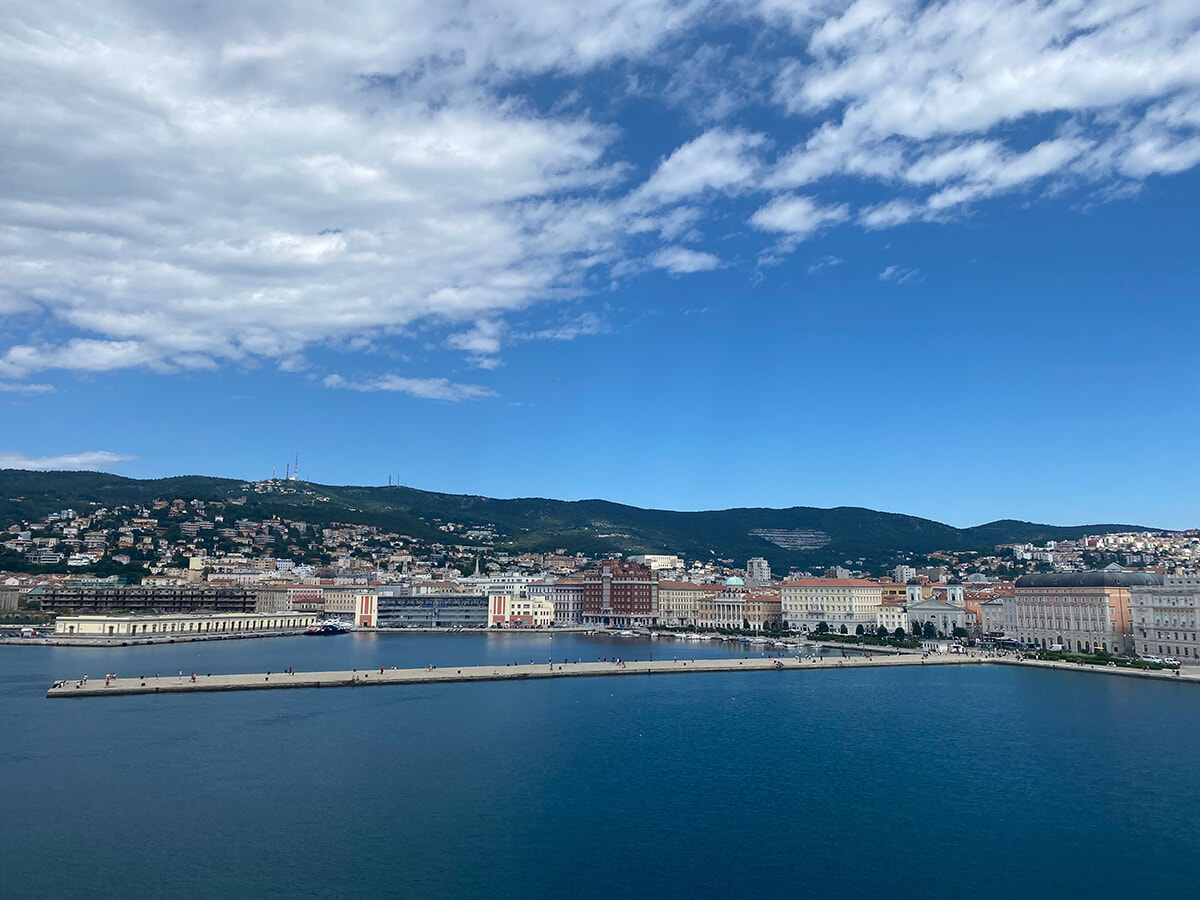 8月10日、「ノルウェージャン ビバ」の初航海がスタート。船からトリエステの優美な街並みを眺めて。