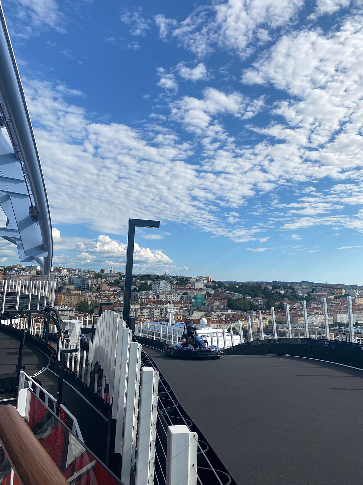 家族連れが集まるのは、18階にあるレーストラック「ビバ スピードウェイ」やアミューズメントパークだ。「ビバ スピードウェイ」は世界初の3階建て海上レーストラックで、真っ青な海に囲まれながらゴーカートを運転する唯一無二の体験ができる。レーストラックが船の屋上部分をぐるりと周るように設計され、競い合っている様子は見ているだけでも圧巻だ。