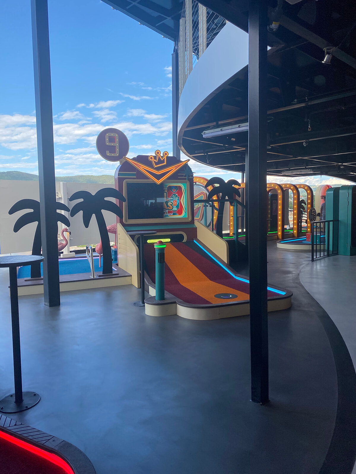 レーストラックの横には、船上最速のスライダー「ザ・ドロップ」や「ラッシュ」のほか、卓球やテニス、ミニゴルフ、ダーツなど、アミューズメントパークさながらの多種多様なアクティビティが用意され、小さな子どもから大人まで飽きることなく遊ぶことができる。