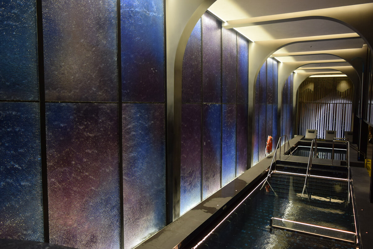 幻想的な雰囲気が漂う「マンダラ スパ」のホットタブとリラクゼーションスペース。
