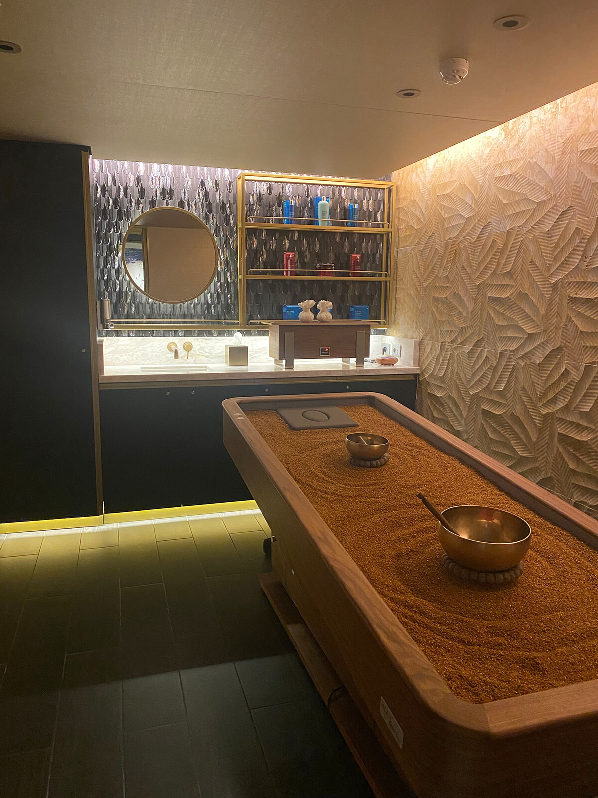 海の上で一日中過ごすことになる乗船日は、忙しない日常からとことん離れた時間を過ごしたいもの。「マンダラ スパ」の広々としたラグジュアリーな空間で、ゆったりとお篭りデイを満喫するのもおすすめだ。
