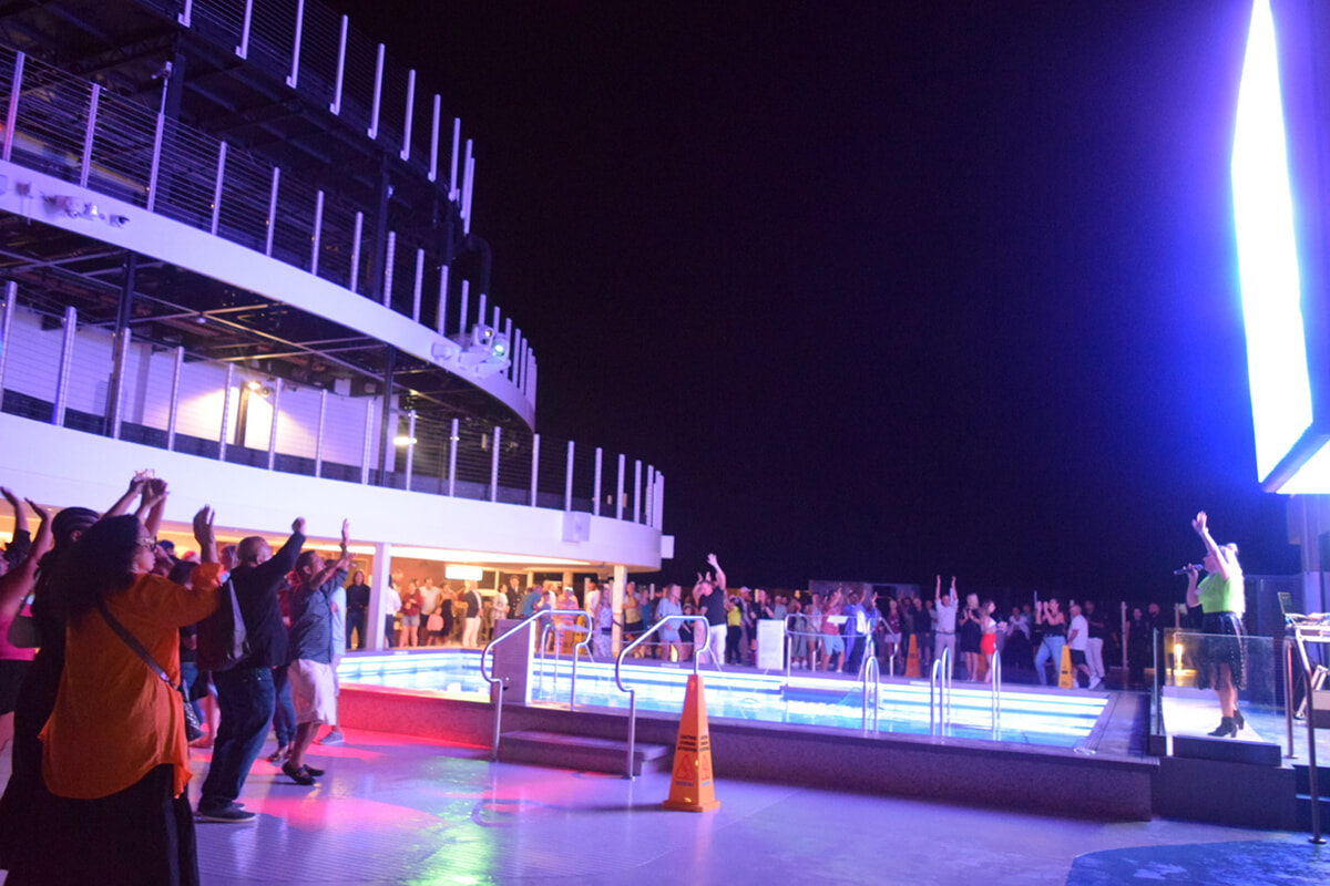 17階のプールデッキではダンスパーティが開催。海の真ん中で、80年代ミュージックが鳴り響く。