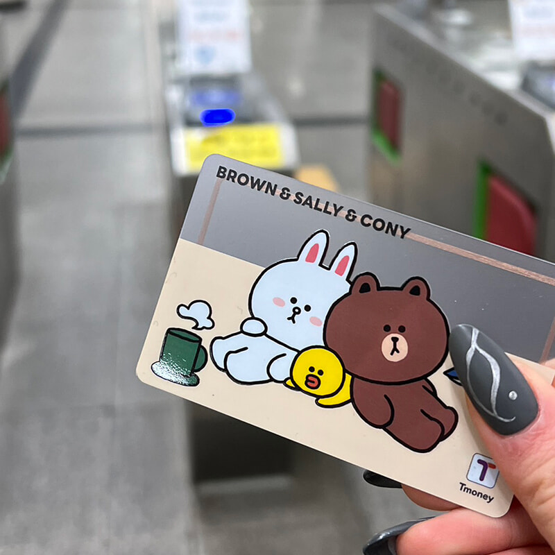 移動はタクシーも使いますが、電車にも乗ります。韓国の交通系ICカード、T-money(写真下)も持っています。