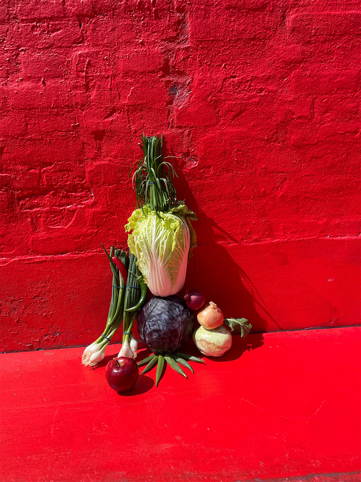 赤はKala’s Kimchiのシンボルカラー。photography: Kala Sung