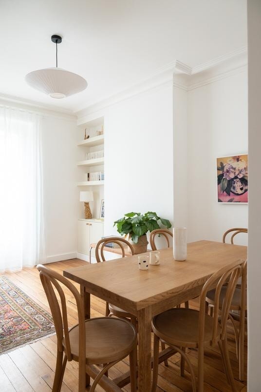 アフター:れっきとしたダイニングスペースのある光が溢れるリビング。photography: Stanislas Gros
