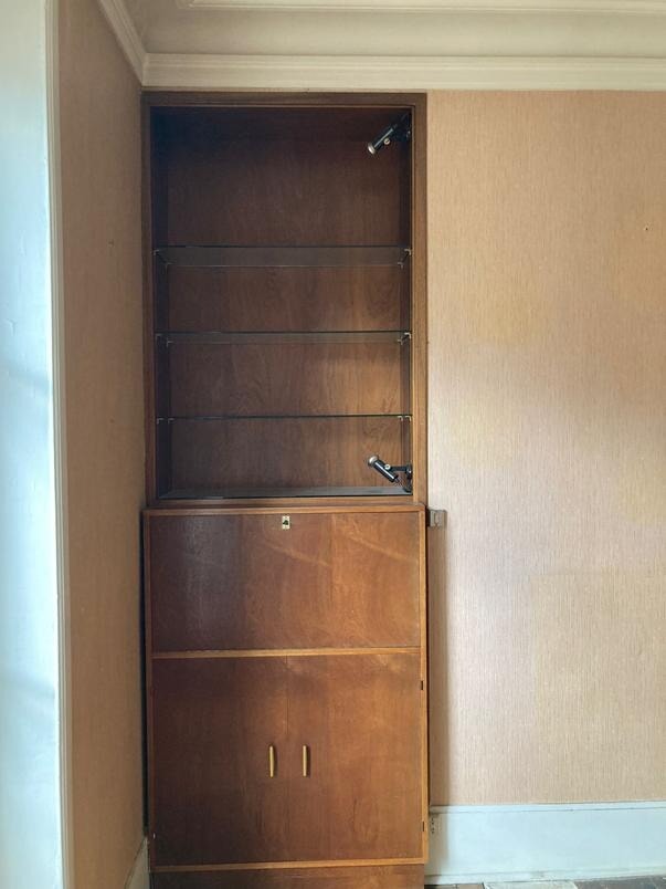 ビフォー:大きなクローゼットと時代おくれの壁紙。photography: Studio Castille