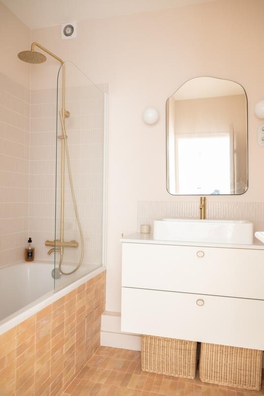 アフター:真新しい浴室はかつて納戸があった場所に! photography: Stanislas Gros