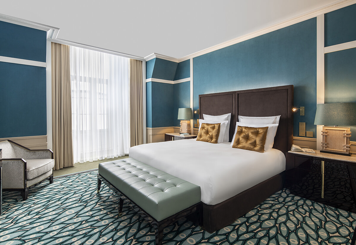 100年以上経つホテル内をリフォーム。洗練されたデラックスダブルルーム。