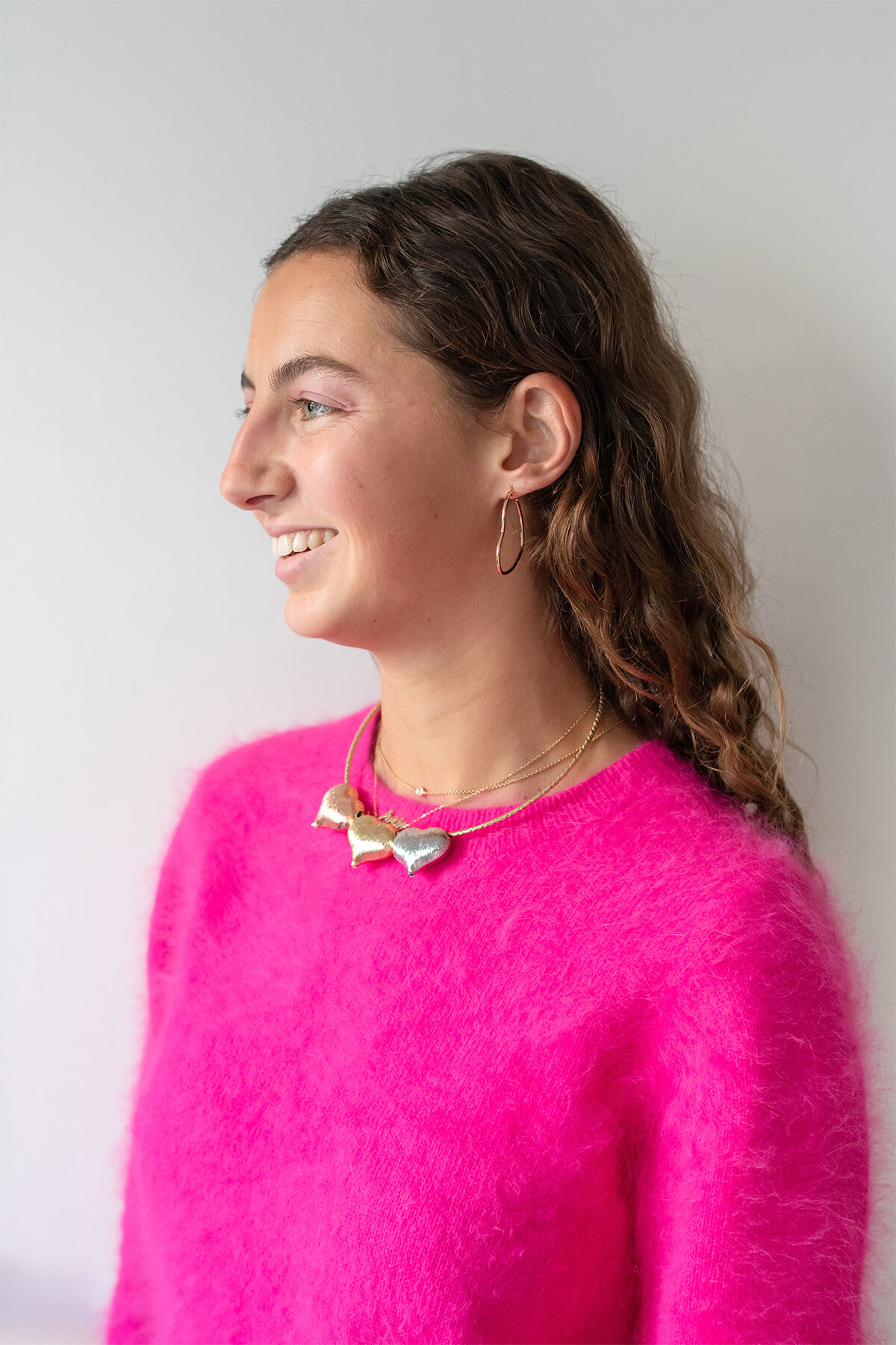 ローズはなかでも、ハートのフープピアスと、母親からもらったシルバー、ゴールド、ブロンズの組み合わせが可愛いネックレスを愛用中。