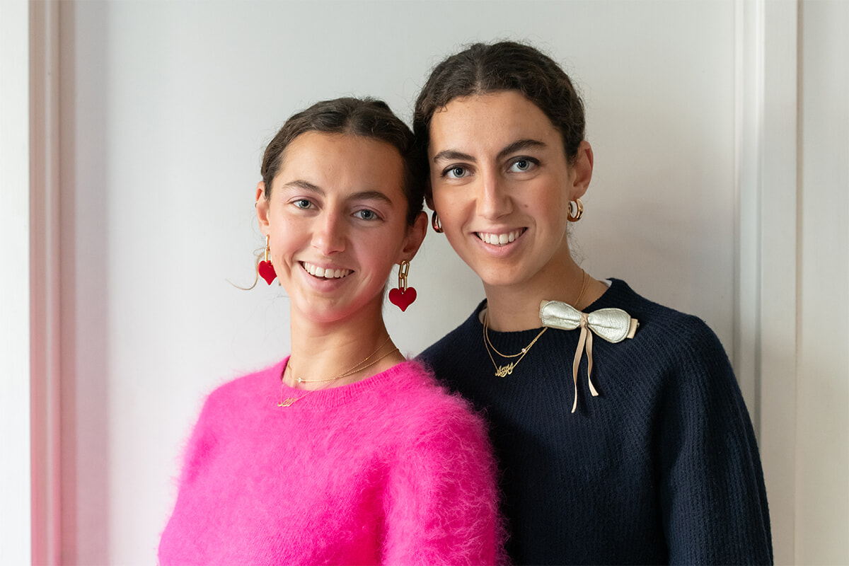 そっくりな双⼦姉妹ならではのユニークな習慣として、どちらかわかるように、⼦どもの頃から互いの”シンボルモチーフ”を決めている。姉のローズ(右)はハート、妹のクロチルド(左)はリボンと、それぞれの個性に合わせて⾃然と決まったのだとか。両親や友⼈もふたりのモチーフがわかっているから、誕⽣⽇やクリスマスにハートとリボンのアクセサリーや⼩物をプレゼントしてくれることも多いそう。