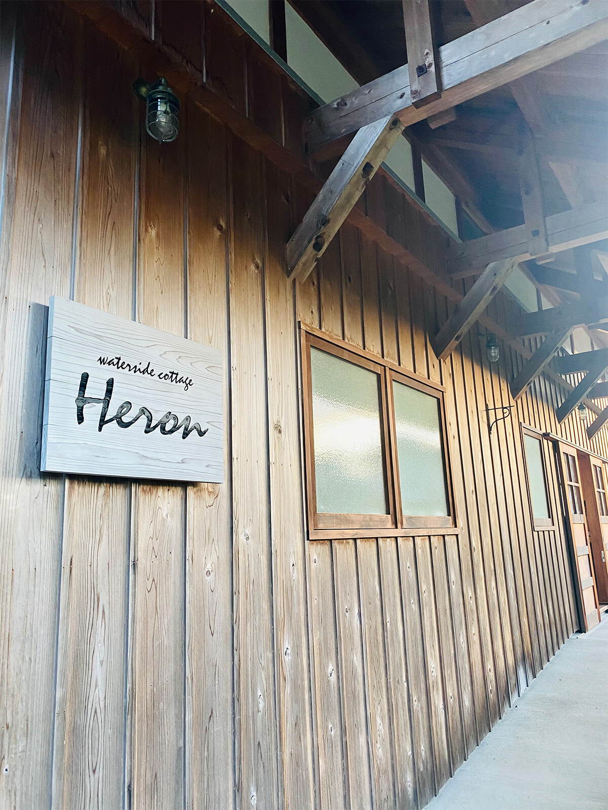 美しいサンセットが拝めると有名な夕日ヶ浦海岸から車で約20分、京都府文化的景観に指定される久美浜町は、久美浜湾に面したエリア。海なのに波はなく、まるで清流川沿いに立っているかのようなコテージ「ヘロン」は、近隣でもつとに有名な複合型ホテル「ホリデー ホーム」の立ち上げに関わった須田悦子さんがオーナー。魚介をはじめ、京丹後ならではの豊かな食材に、敷地内にある自家農園で収穫された有機野菜をシェフが調理し、もてなしてくれる、まるで友人の家に遊びに来たかのような居心地のいいオーベルジュだ。