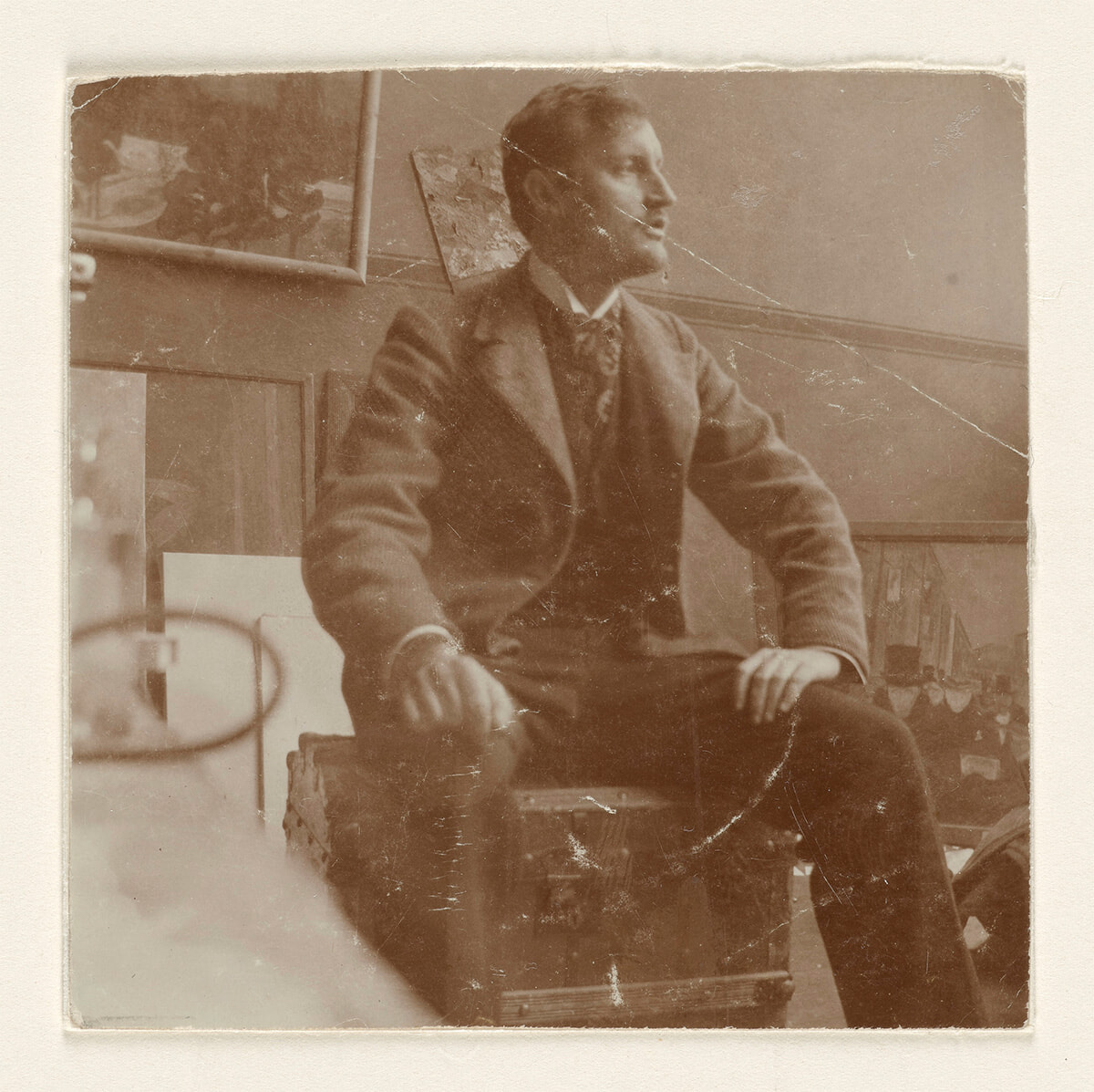 エドヴァルド・ムンク、『ベルリン、リュッツォウ通り82番のアトリエで、トランクの上に座る自画像』1902年。photography: © MUNCH, Oslo
