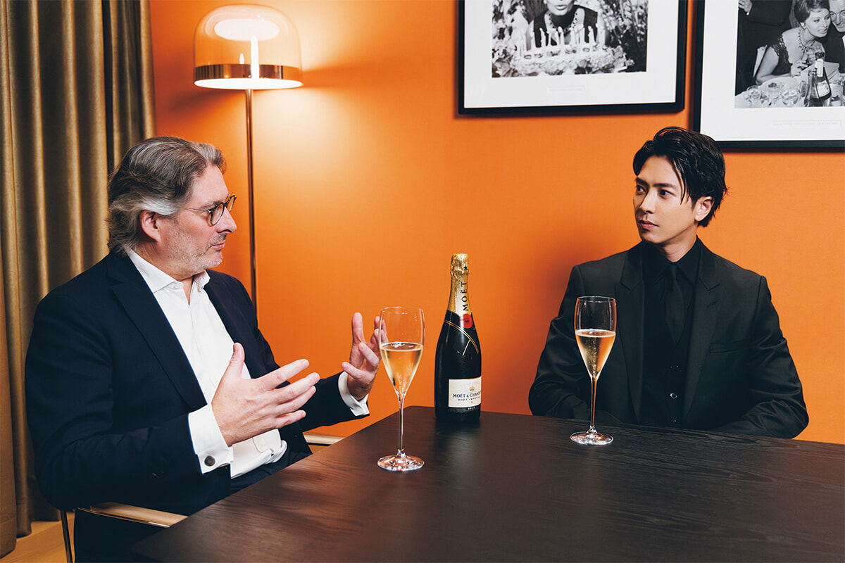 幸福と成功を象徴する美しきシャンパン、モエ・エ・シャンドン。山下智久がその魅力を、最高醸造責任者のブノワ・ゴエズと語り合う。