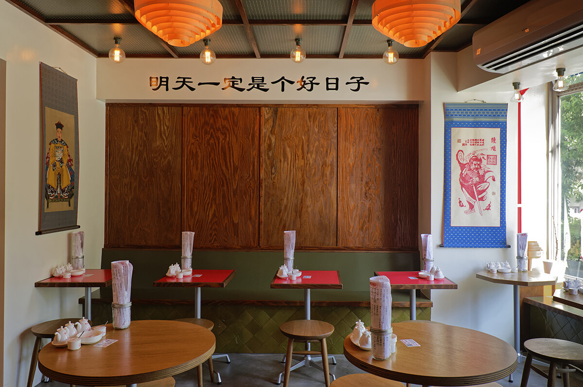 壁に書かれた「明日はきっといいことがある」という意味の中国語、縁起がいいと言われる”八”角形のテーブルなど気分が上がる要素が随所に。