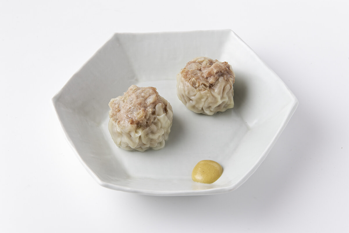 「焼売」(2個)¥550。豚ひき肉と玉ネギのみでシンプルに。軽めの赤はもちろん、果実味のある白とも好相性。
