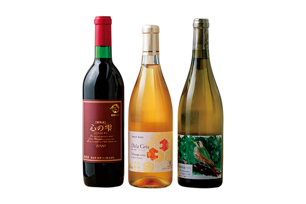日本ワインは北は余市から信州、南は大分まで全国各地より。