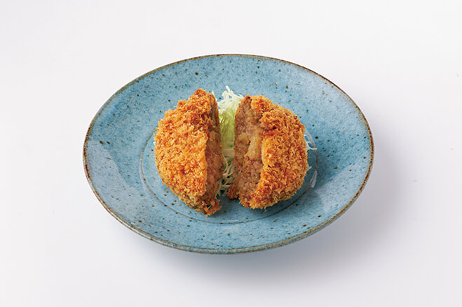 しぐれ煮状の牛肉を加えた「牛肉山椒コロッケ」¥800。キレのいい辛味が後を引く。