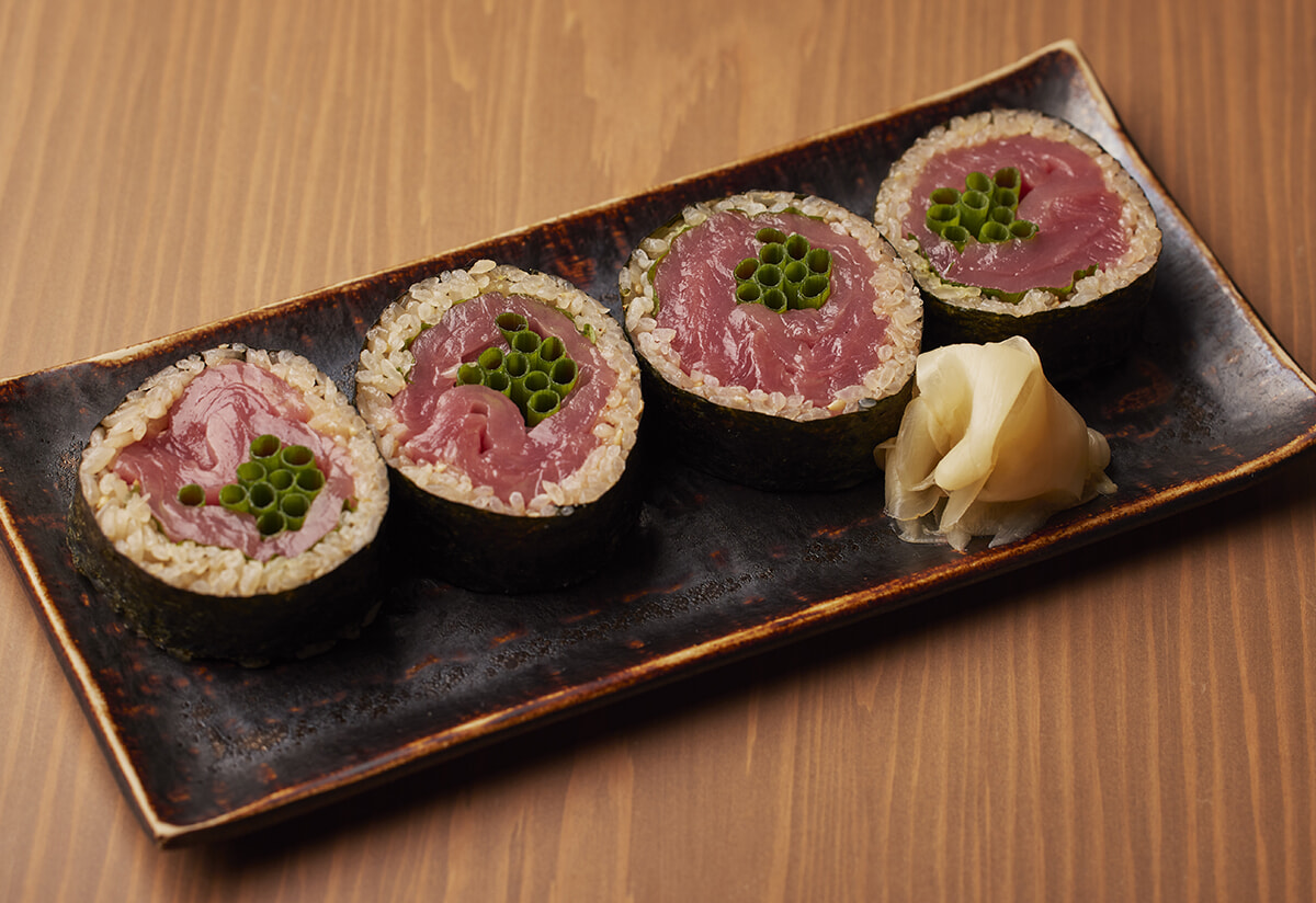 「本マグロの鉄火太巻き」¥2,640。鮨飯にはバルサミコ酢を隠し味に入れている。テイクアウトも可。