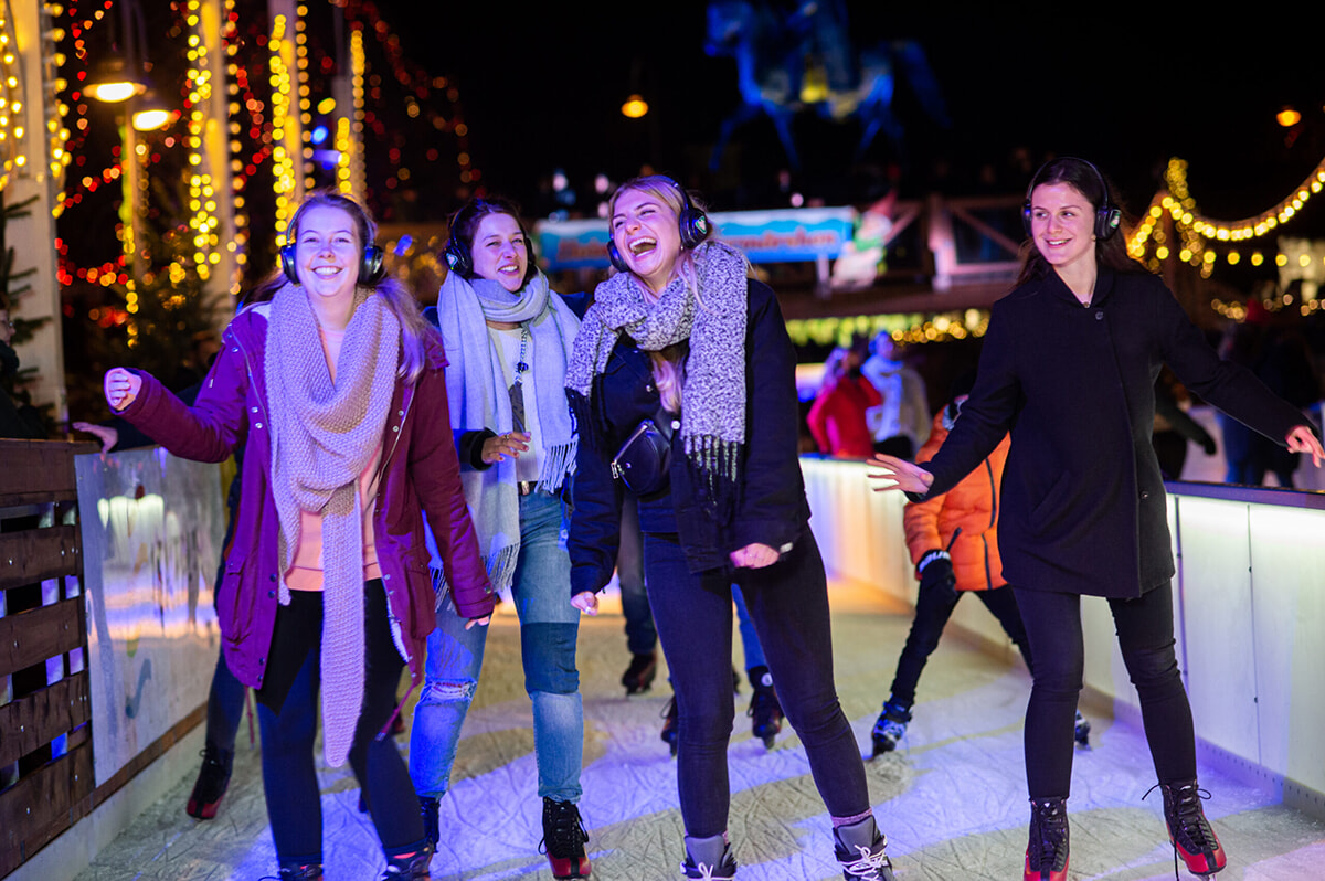 スケートしながらのサイレントディスコは、友達と行けば楽しさ倍増。photography: Heinzels Wintermärchen Köln
