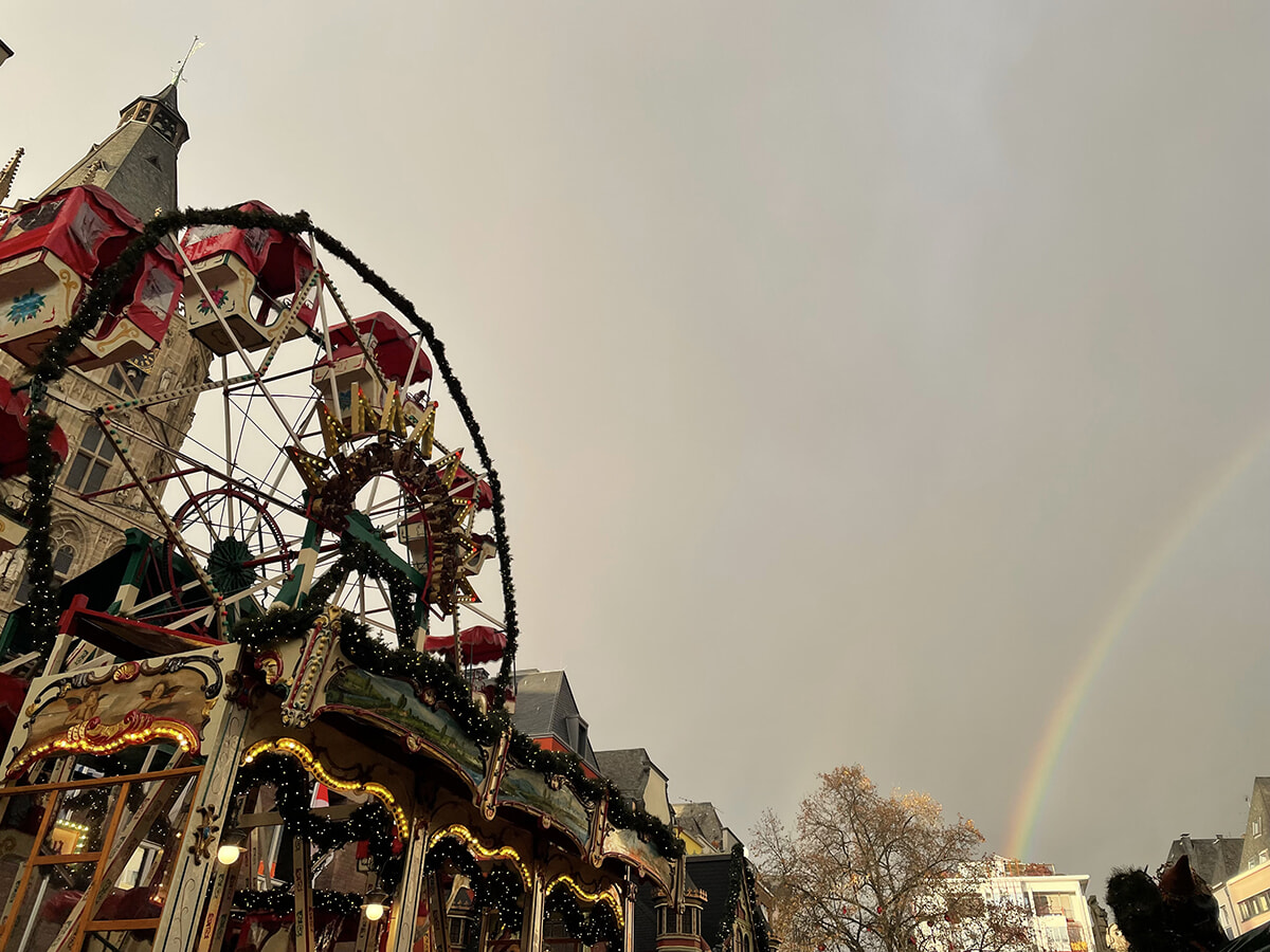 世界遺産の街、ケルン旧市街で開催されている「ハインツェルの冬のメルヘン」は、その意味で最高級のクリスマスマーケットと言えるだろう。ユネスコ世界遺産にも登録されているケルン大聖堂をバックに、スケートリンクやカーリング、スピードが速すぎでスリリング(?!)な130年の歴史を持つ観覧車など、エンターテイメント性のあるものがいっぱい。ワイワイと遊園地のように楽しめるクリスマスマーケットだ。