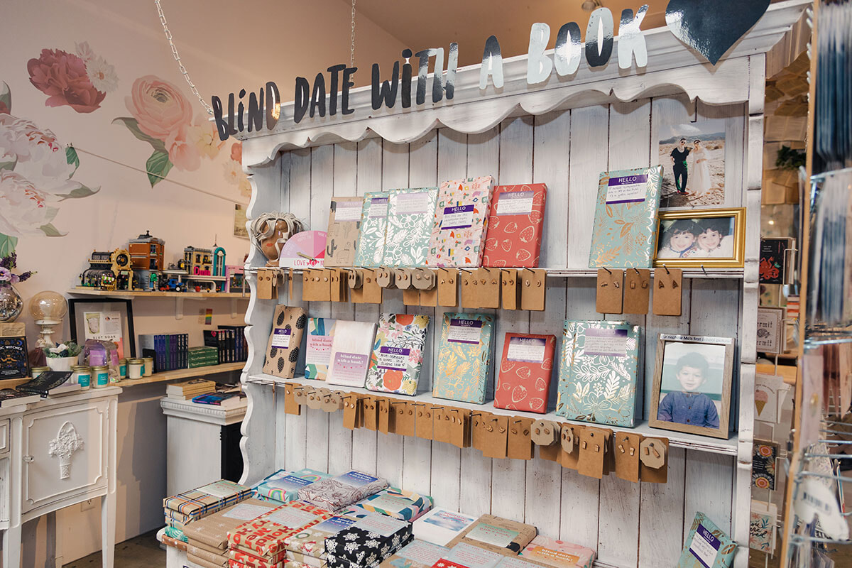 ブラインドデートは全く知らない相手とのデートのこと。書店のブランドデートコーナーでは、紙包装されて中身が分からない本に出会う楽しみを。ロマンス小説のタイプは多彩で、背景は時代物から現代まで、タイプもロマコメからダーク、主人公はLGBTQ+、吸血鬼、同級生などさまざまで、セクシーさのタイプも好みで選べる。