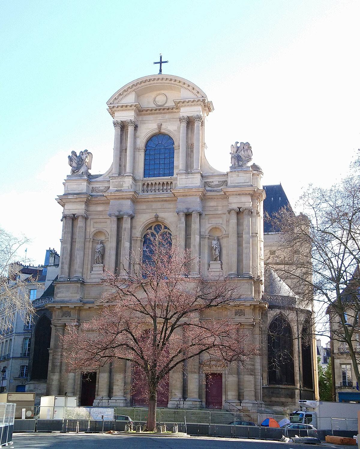 カトリックにちなんで週末、近所でパリ市庁舎の裏手にあるサン・ジェルべ教会に足を運んでみました。1657年ルイ13世の時代に造られたバロック様式が美しいファサードは、長い修復工事を経てすがすがしい顔になりました。教会の前にあるのは、中世以来植えられてきた楡の木。