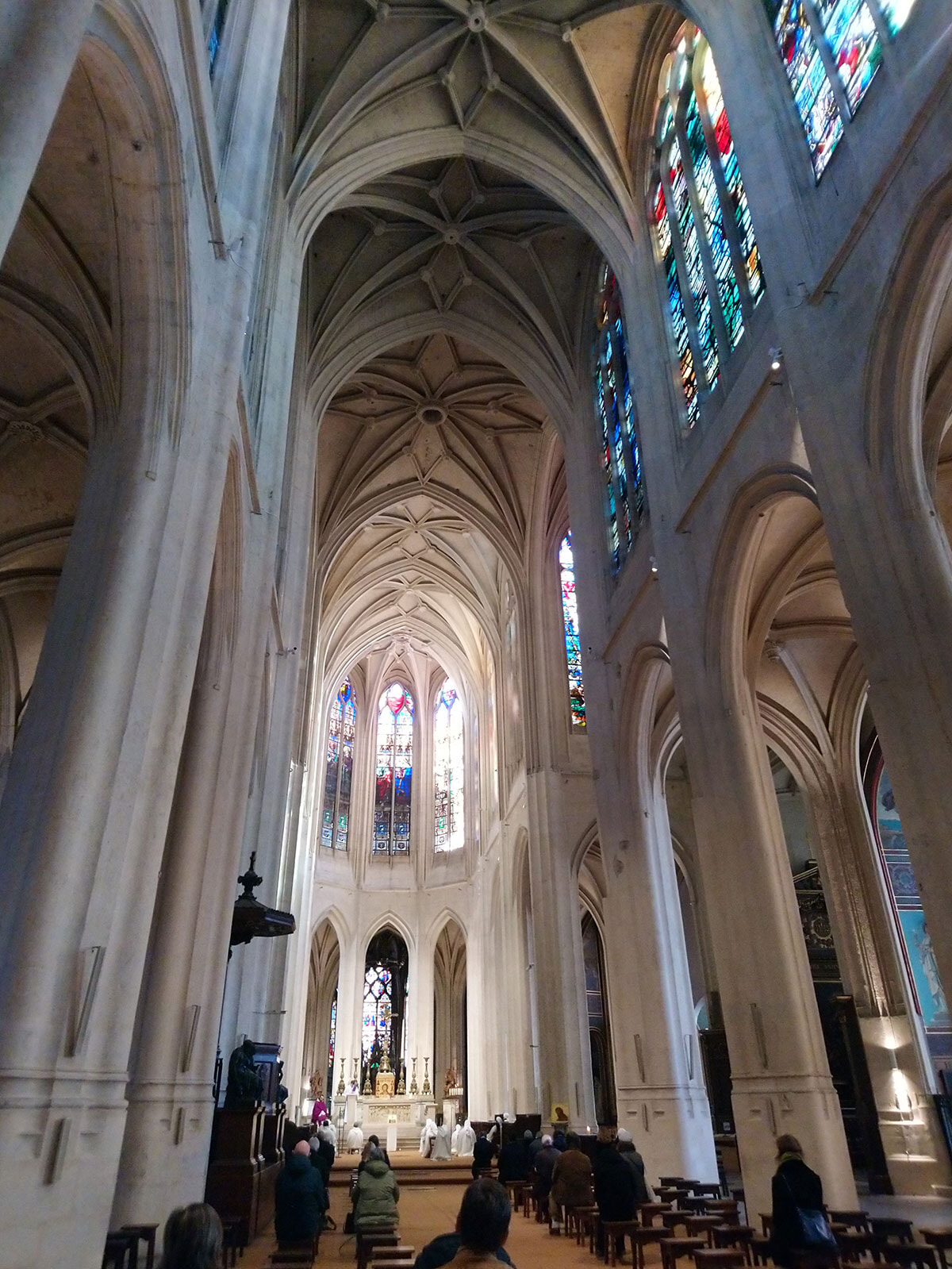 中に入ると厳かにミサが執り行われているところ。朗々とした神父様の声が、天国を象徴するゴシック様式の高い天井に響き渡って。