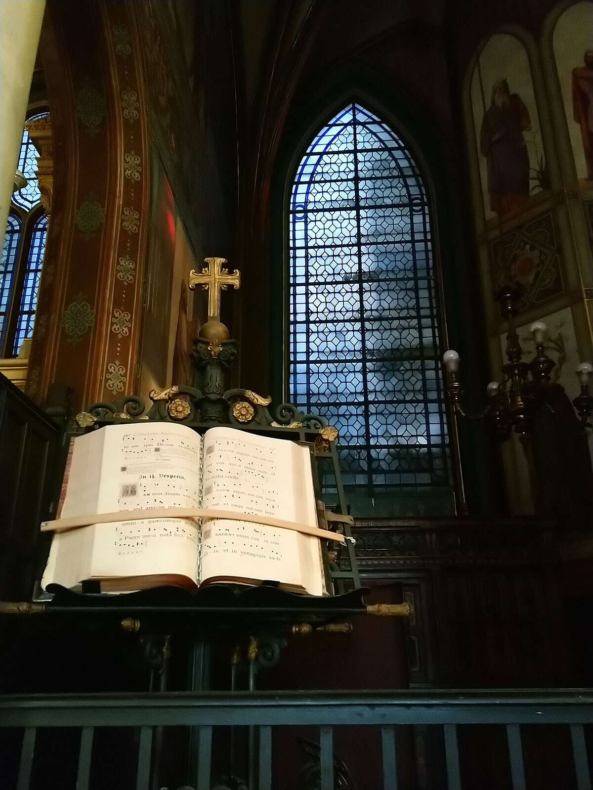 ここはクープラン家が代々奏者を務めたというパリ最古のオルガンが有名ですが、この日は讃美歌の楽譜が公開されていました。