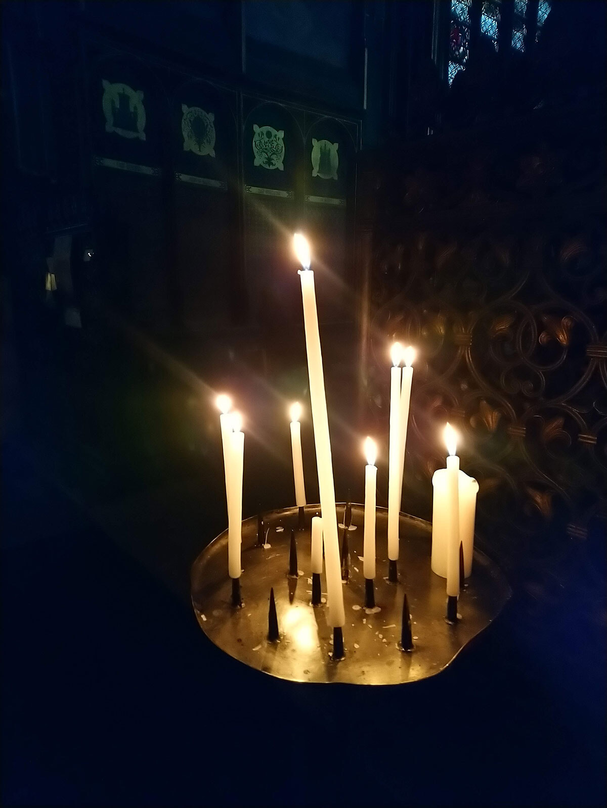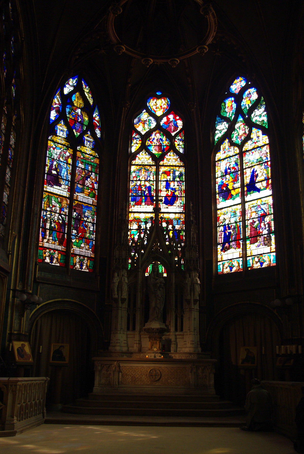 教会の中の最も神聖な場所、聖母礼拝堂。太陽が傾いてきてマリアさまの一生が描かれたステンドグラスに光が差す様子は神秘的ですらあります。