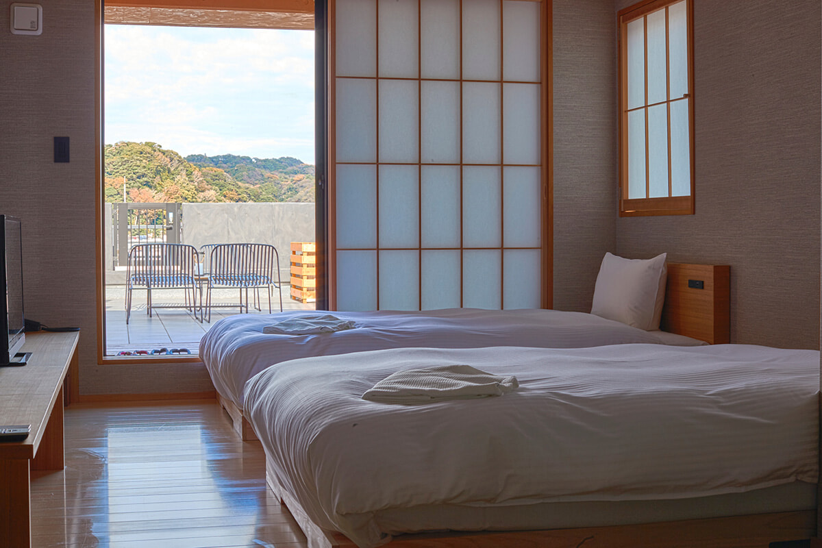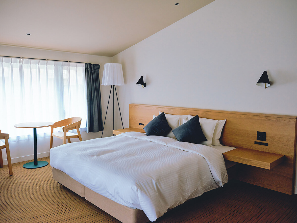 ダブルベッドタイプの客室「TERRACE」。テラスつきなので自然を感じながらゆっくりと過ごせる。
