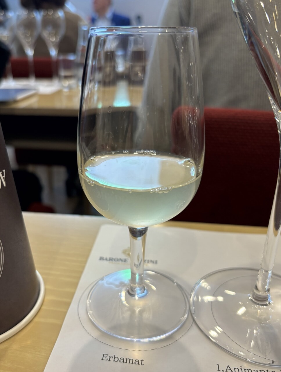 香りはどこまでもフルーティで甘やかなのに、飲んでみるとまるで若い柑橘を絞ったような、思わず口がすぼまるほどの酸味があって驚く。この酸味を活かすのが難しく、また栽培が難しいこともあってエルバマットは長らく忘れられた品種となっていた、とブレッシャニーニは語る。60年以上もシャルドネ、ピノ・ネロ、ピノ・ビアンコのみを使用することをよしとしてきたフランチャコルタでは、エルバマットを使うことの是非がいまも話題になり、使わないことを決めている生産者もいるという。