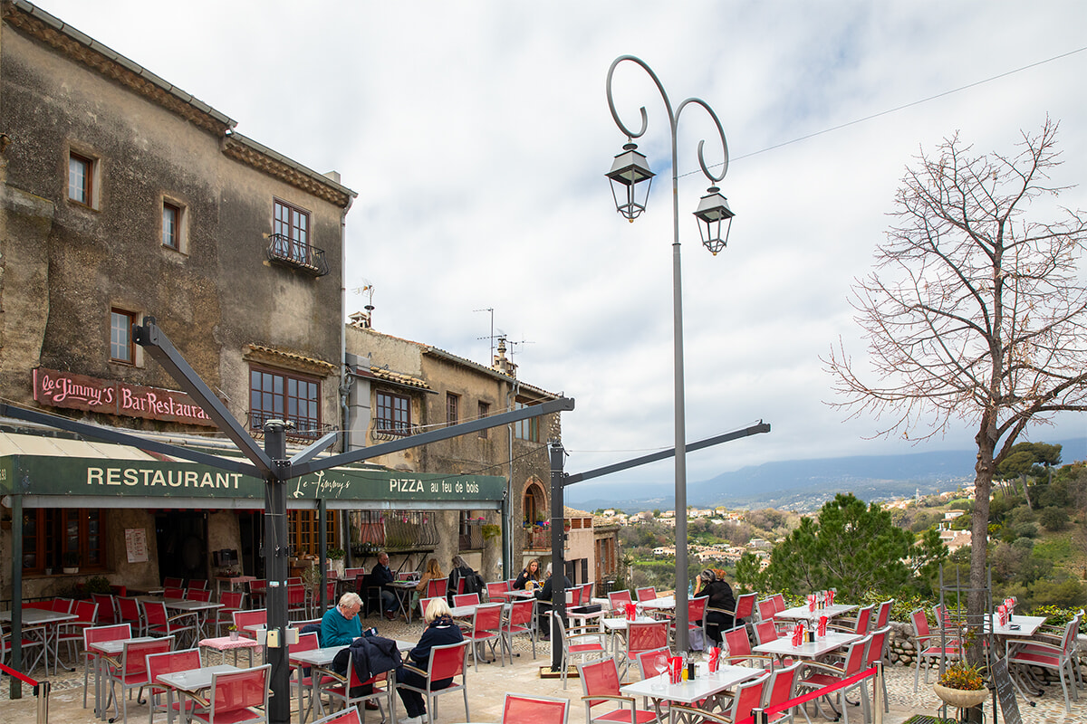 ルノワール美術館を訪ねたら、中心地からの無料シャトルバスを利用してオー・ドゥ・カーニュに足を延ばしたい。小道の入り組む城壁内を歩けば、かつて画家たちが住んだゆかりの家や風景が目前に。丘の頂上の広場でランチをとるなら、絶景テラスが自慢のル・ジミーズがおすすめ。