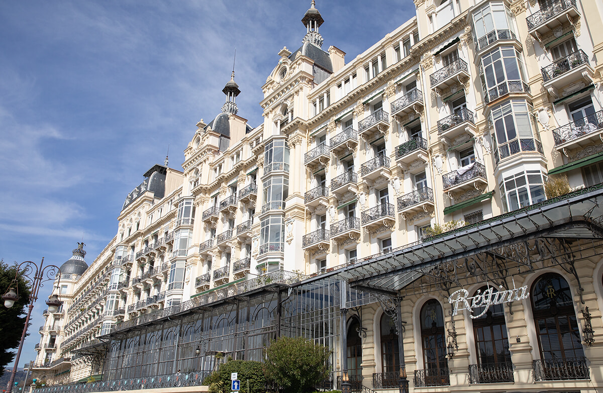 瀟洒なブルジョワエリア、シミエ地区にあるレジーナ。1897年に英国のヴィクトリア女王を迎えるために建てられた旧ホテル内に、マティスはアパルトマンとアトリエを購入。ヴァンスの礼拝堂の壁画は、このアトリエで完成させた。