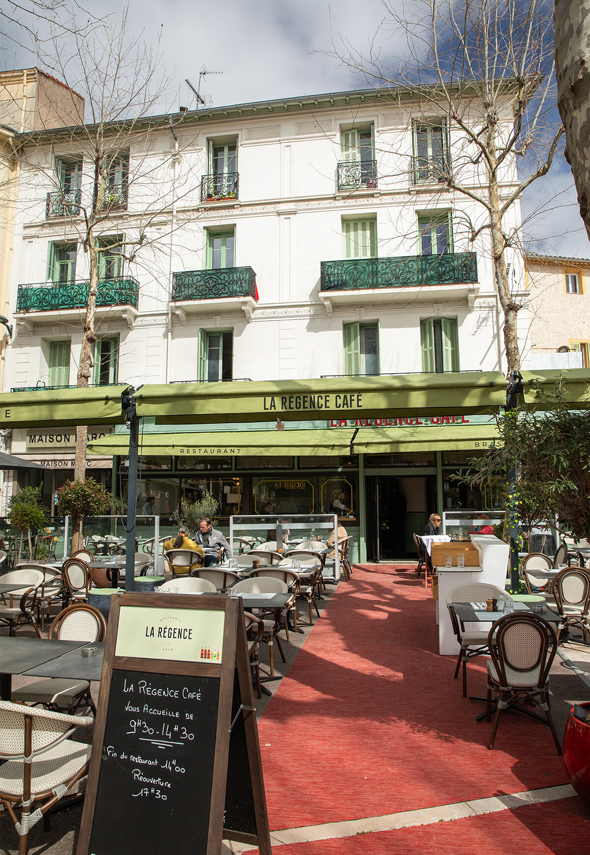 市場が立つグラン・ジャルダン広場はヴァンスの中心。マティスは町に来ると、このラ・レジャンス・カフェでよく休憩していたという。