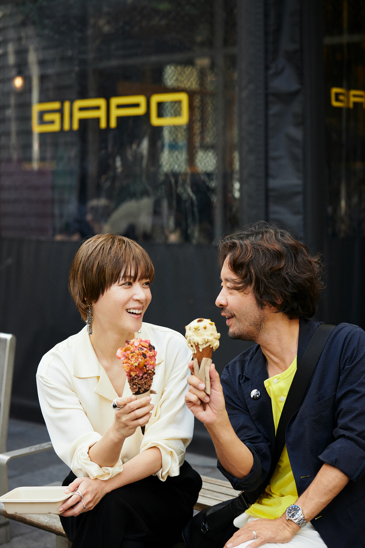 アヒからの帰りに立ち寄ったのは、グルテンフリー&ヴィーガン対応のアイスクリーム店「ジアポ」。店主のジャンパオロとアナロサ夫妻は「普通のアイスクリームはつまらない」とユニークなクリエイションに挑戦し、それがSNSでも話題に。