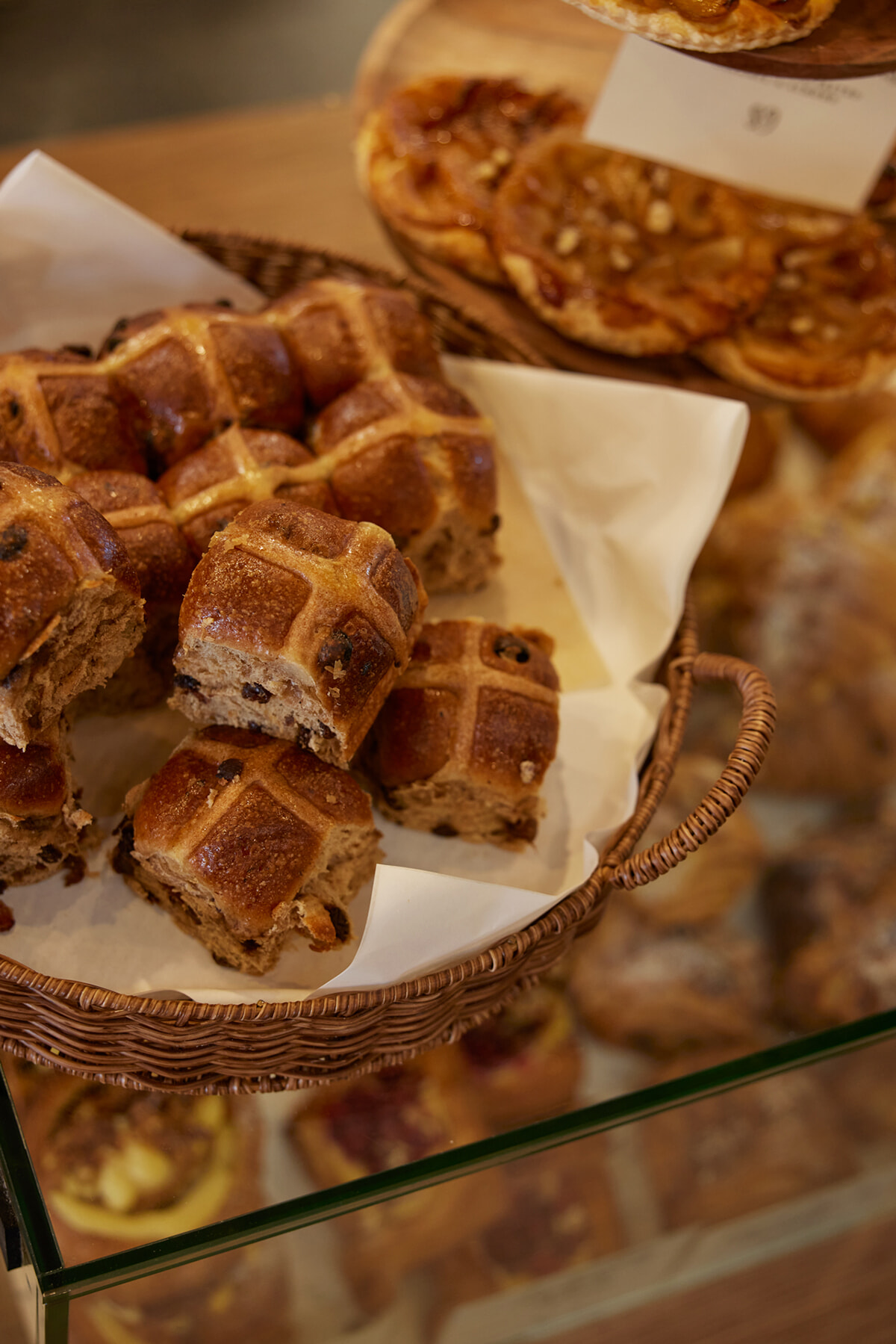 イギリスでイースター時期に食べる伝統的なパン、ホットクロスバンズも並んでいた。1ピース 4NZドル